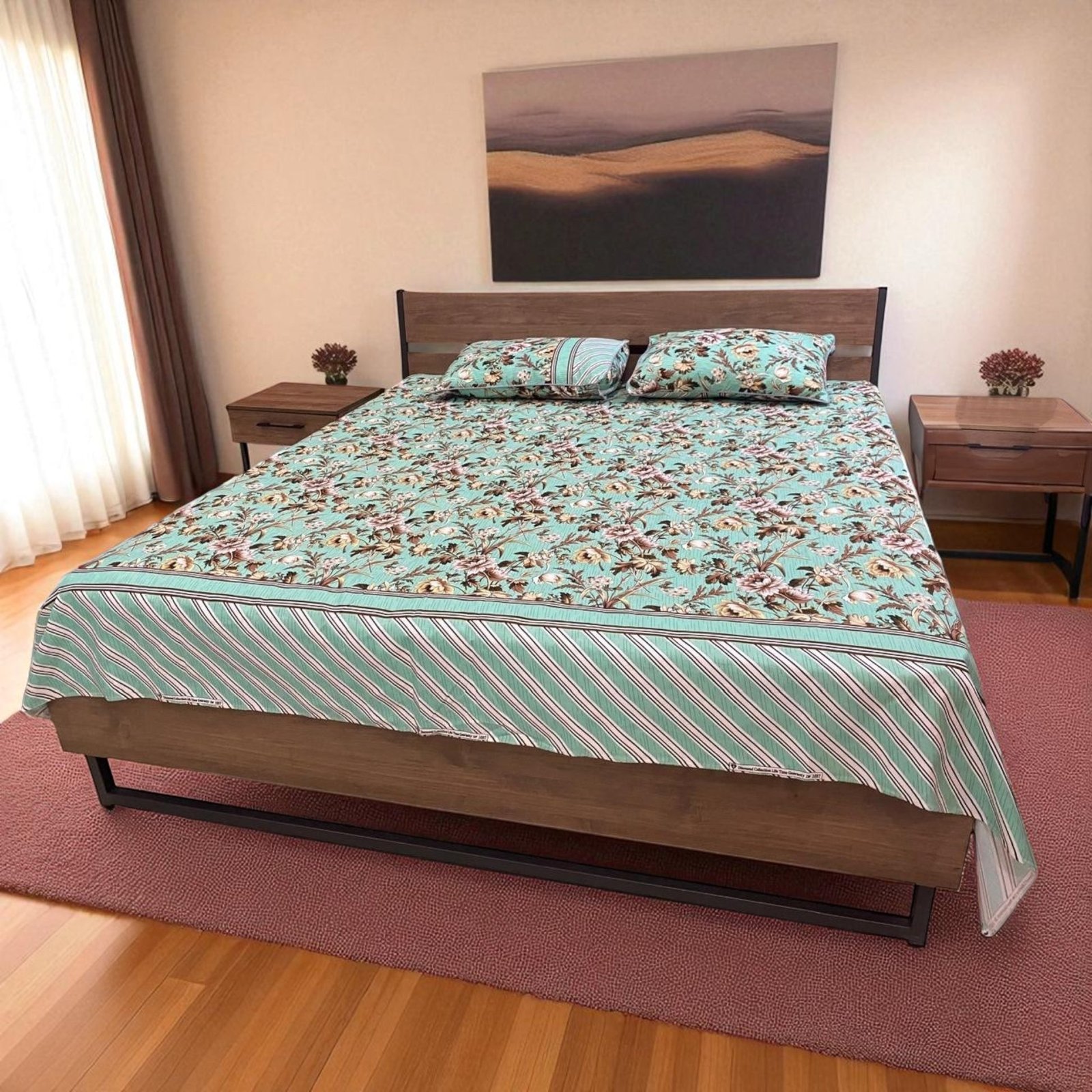 3 Pcs Cotton Satin Double Bed Sheet – Light Green