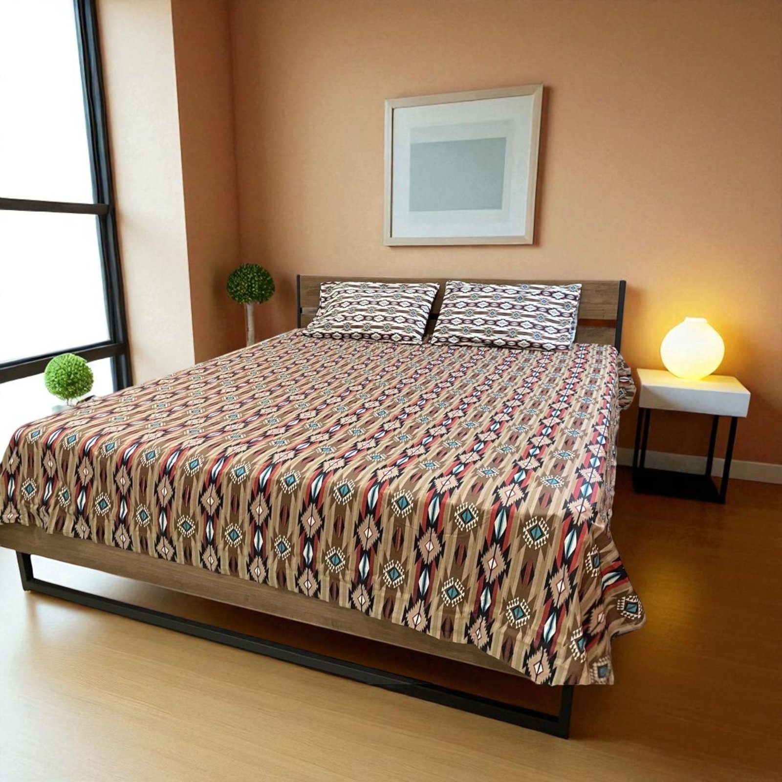 3 Pcs Cotton Brown Printed Bedsheet King Size