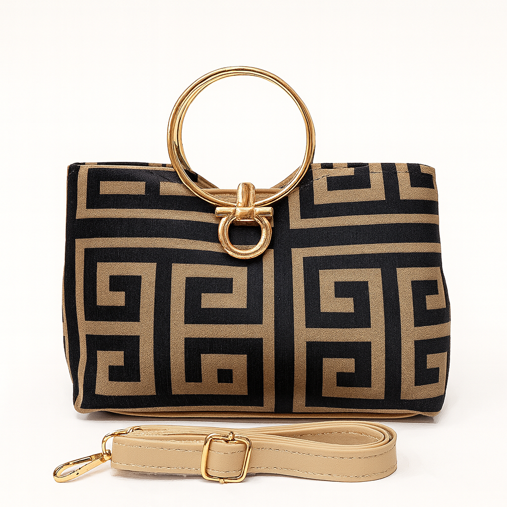 Quality Meets Style: Crafted with printed finishes and elegant gold-tone ring handles, adding a chic, polished touch.
